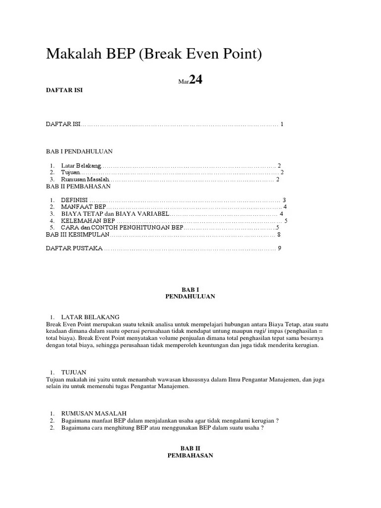 Dalam suatu perusahaan, perhitungan bep sangat penting untuk dilakukan karena menjadi acuan dalam analisis proyeksi jumlah barang yang akan . Akan merasakan beberapa manfaat dalam membaca laporan akuntansi perusahaan anda. Analisis break even point pada perusahaan daerah jasa transportasi kota. Even point dimana perusahaan akan. Analisa break even point sangat penting bagi pimpinan perusahaan untuk mengetahui pada tingkat produksi berapa jumlah penjualan atau dengan kata lain dengan .